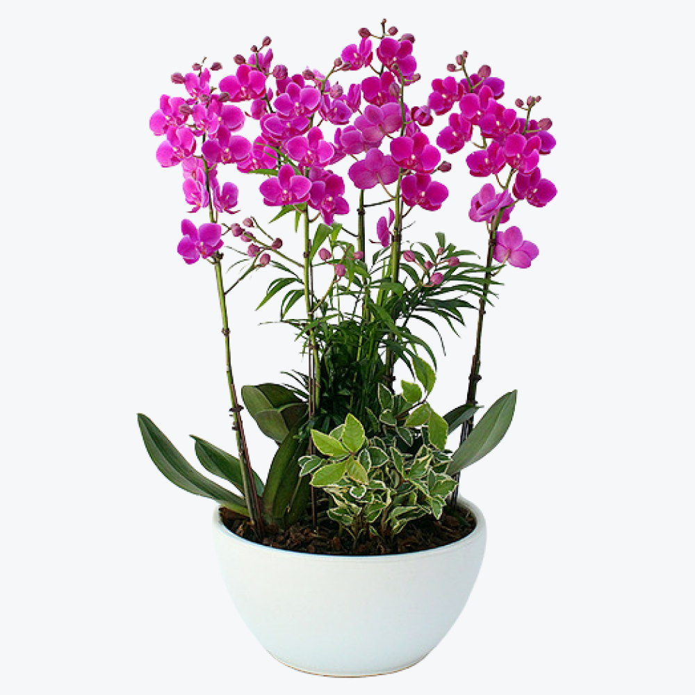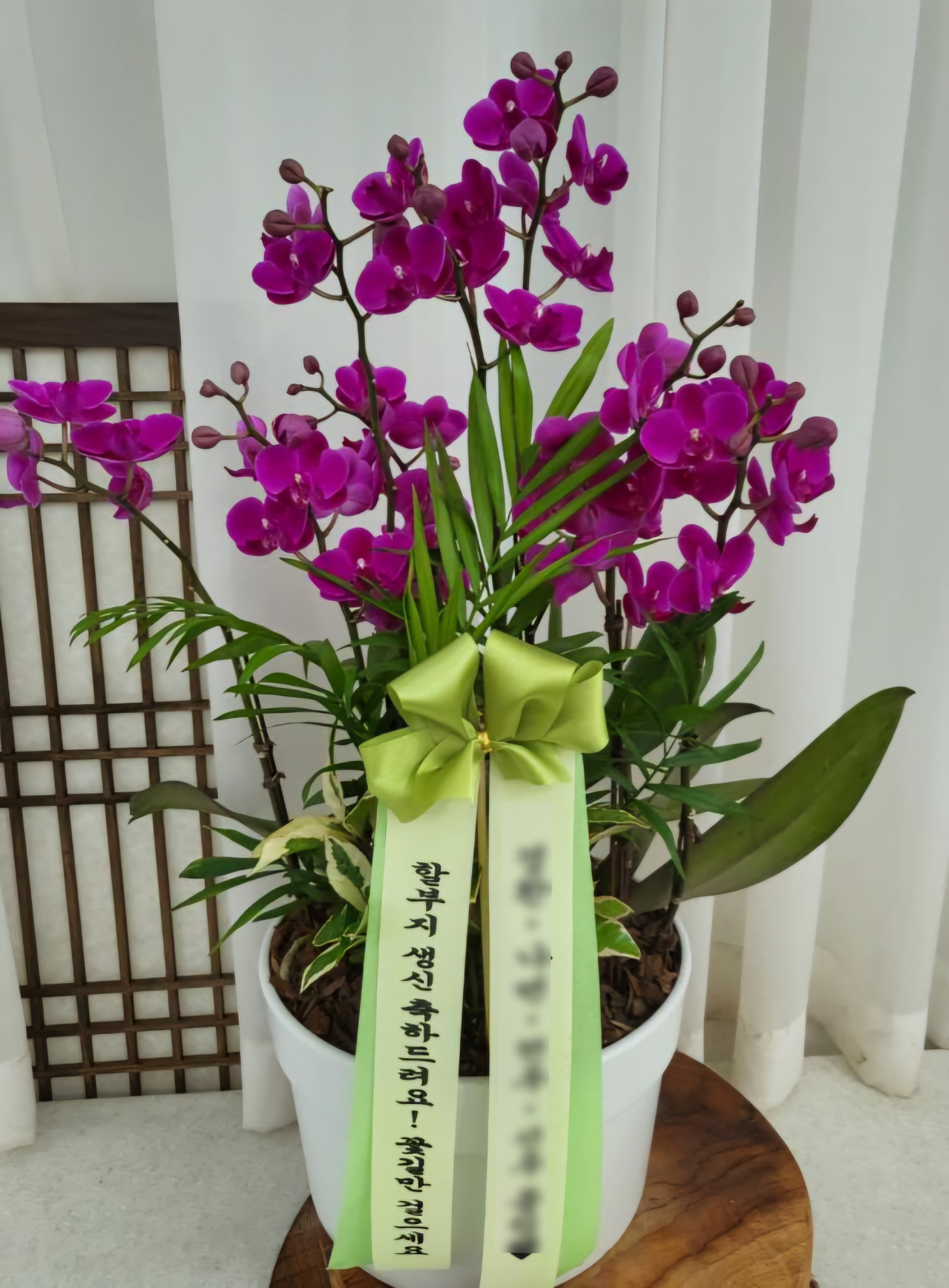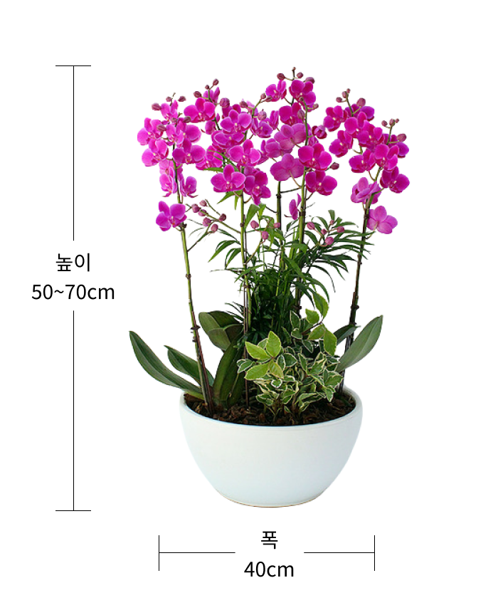 서양란 중에서도 행운을 가져다 준다는 꽃말로 개업, 집들이 선물로 인기가 많은 식물 입니다. 만일 천일 동안 핀다는 뜻으로 한번 개화를 하면 3~5개월 동안 개화 상태를 유지하여 아름답고 향기로운 모습을 오랫동안 볼 수 있습니다. 고급스러운 인테리어와 꽃말의 행운을 선물하세요. (*가득, 만천홍은 4대 이상으로 제작 됩니다)